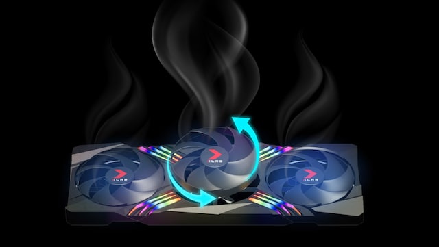 Använder 3 100 mm dubbla kullager med runda fläktar. Jämfört med traditionella 90 mm fläktar ger de 40 % mer luftflöde och 55 % mer lufttryck. Dessutom konvergerar det runda fläktbladet luften för att förbättra termisk prestanda.