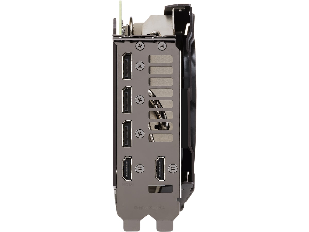 Värmespridaren drar upp värmen till heatpipes som transporterar den genom en lamellstack som fyller större delen av kortets stora 2,7 slitsar. Den här generationens TUF Gaming-grafikkort har också en särskild kylfläns för VRAM för att hålla temperaturen långt under de maximala driftsspecifikationerna.
