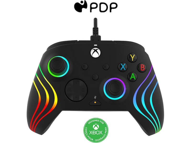 Skapa vågor med miljontals färger och kombinationer av Afterglow Wave Wired Controllers RBG-lampor och inställningar. Du kan växla mellan olika ljuseffekter och färger med hjälp av funktionsknappen, eller ladda ner den kostnadsfria appen PDP Control Hub för att ändra de åtta RGB-belysningszonerna med mera.
