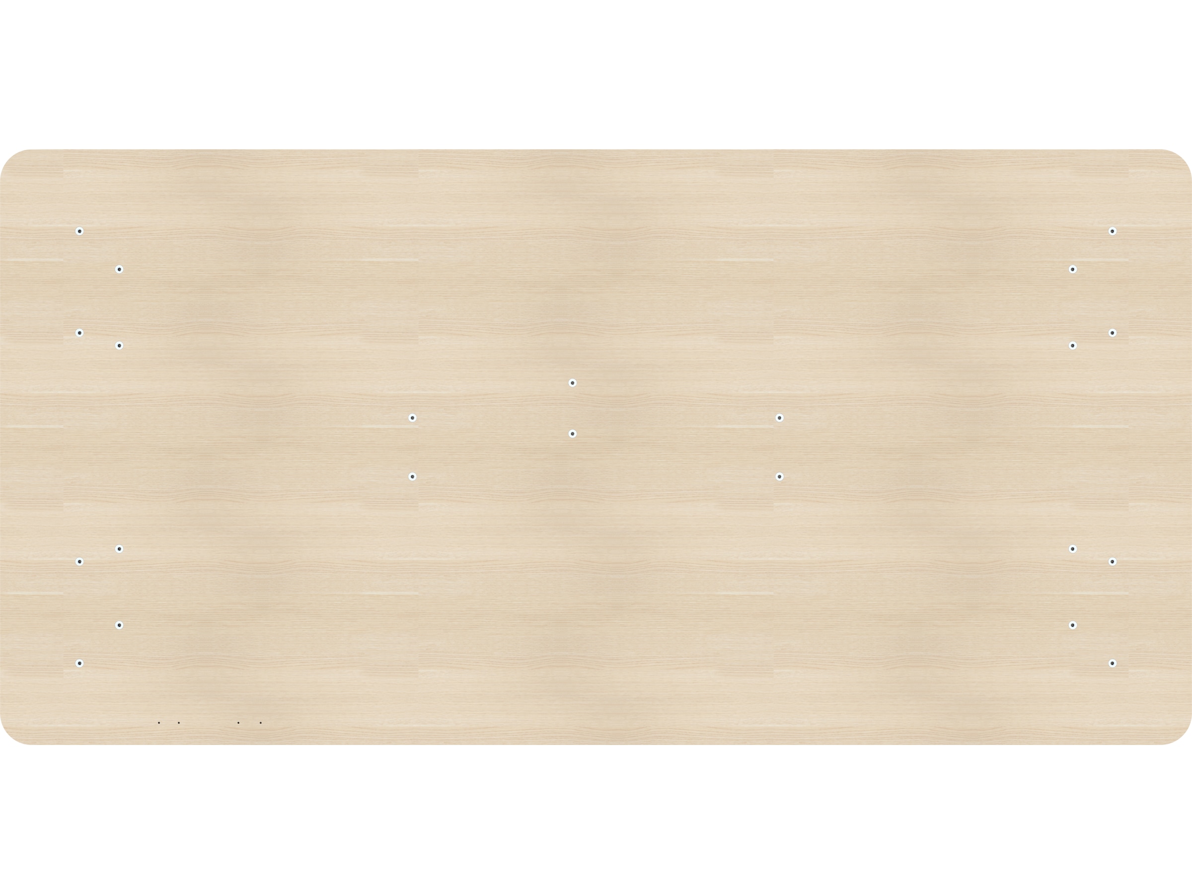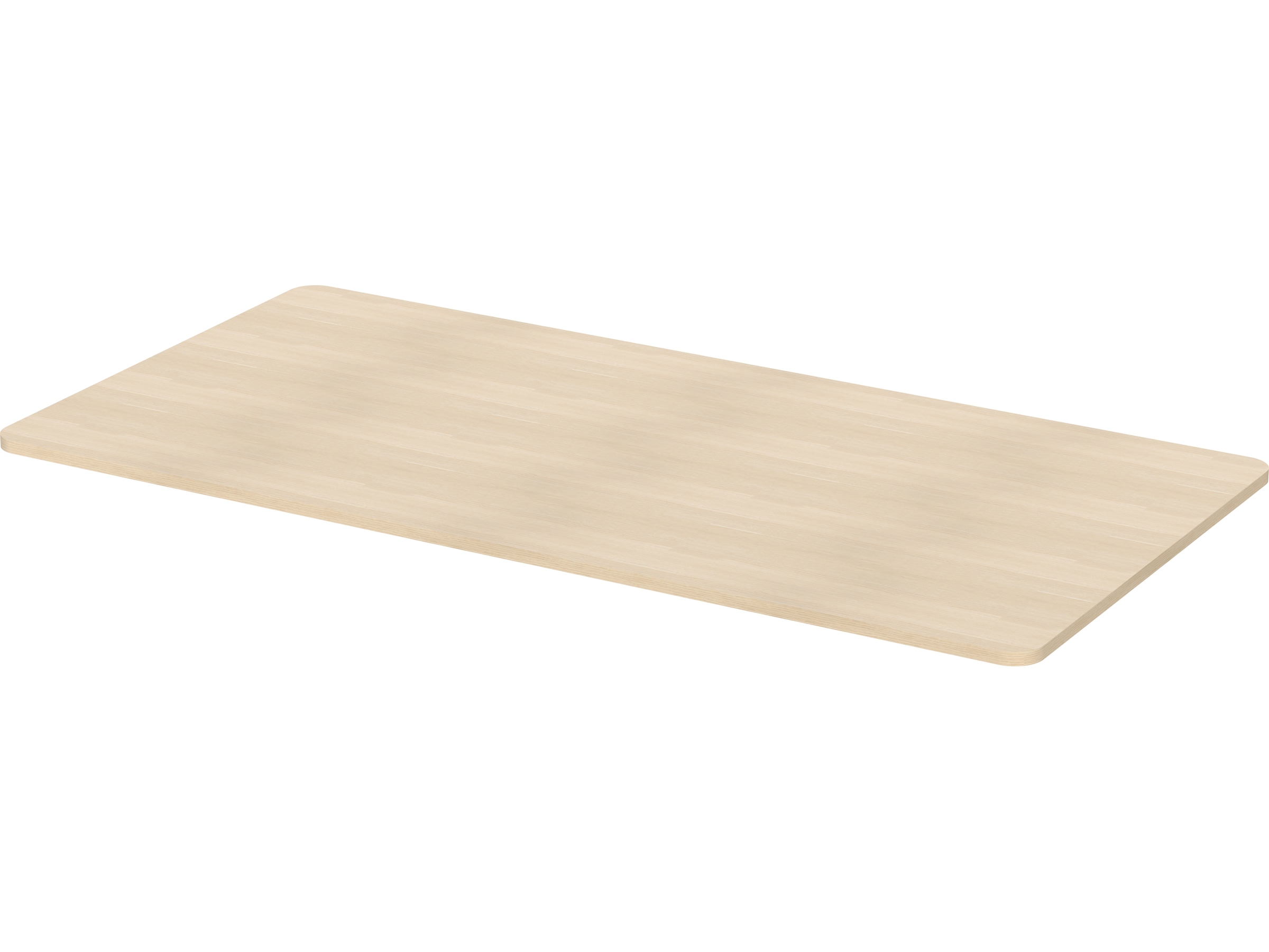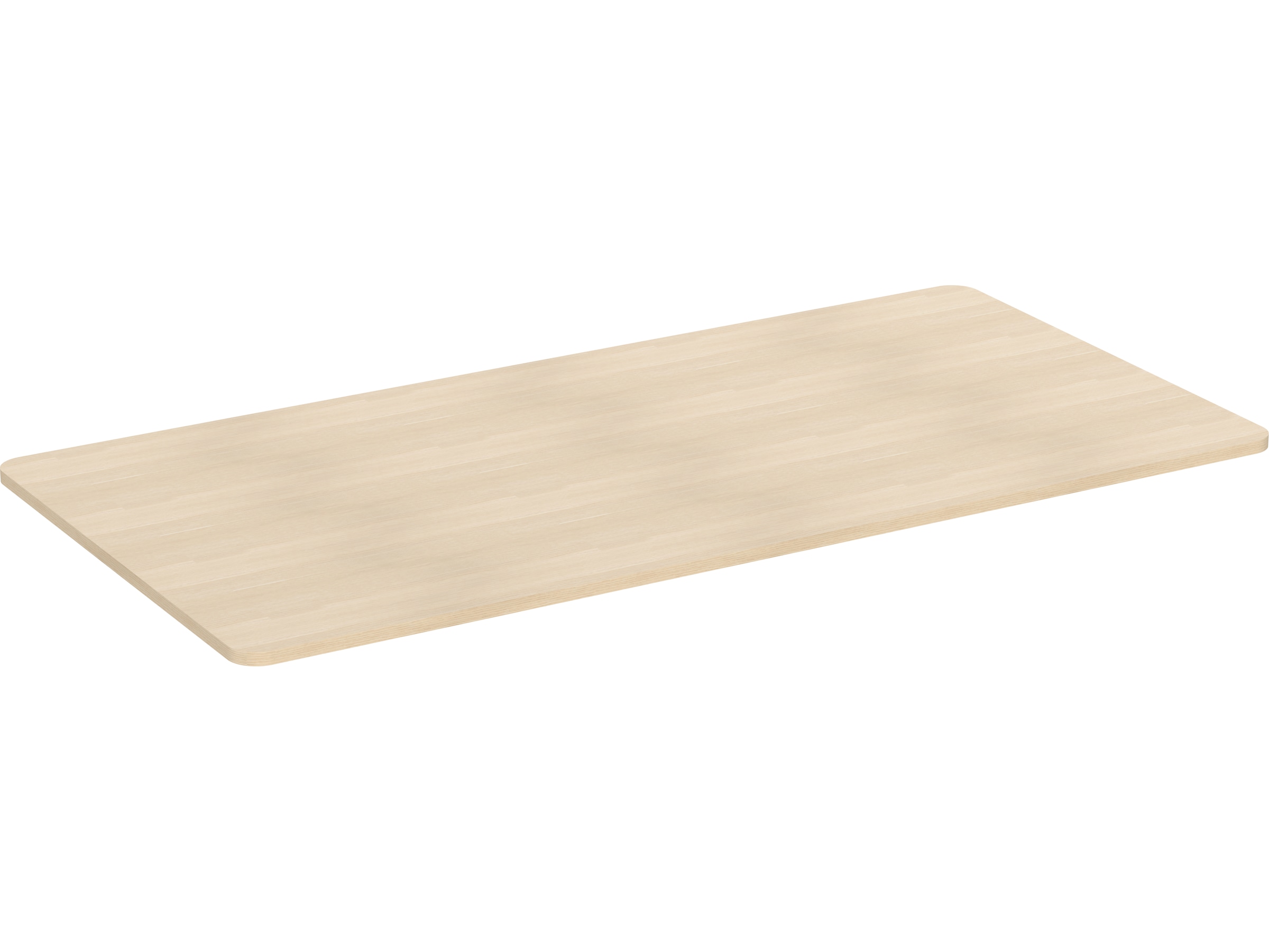 Bordsskiva med rundade kanter och förborrade skruvhål. Bordsskivan är tillverkad av spånskiva och har en laminerad yta som gör skivan tålig och lätt att hålla ren.