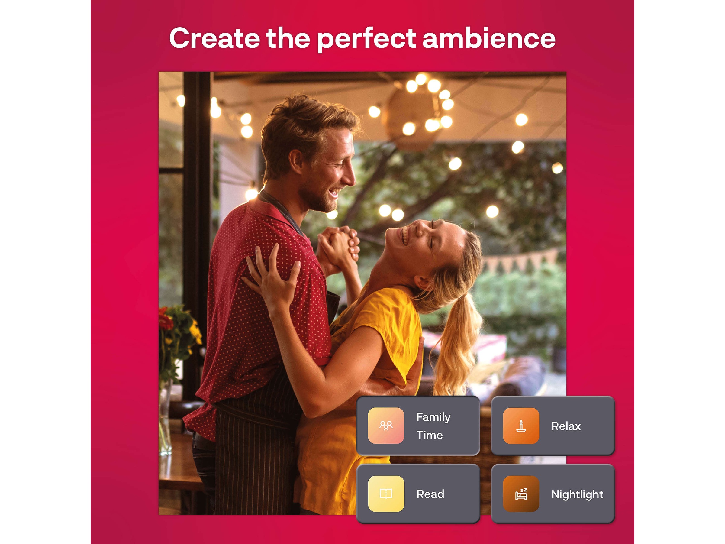 Tack vare glasets gyllene beläggning skapar de smarta glödlamporna en behaglig och mysig atmosfär. Den trendiga vintagelampan kan även dimmas om du vill ha mer stämning.