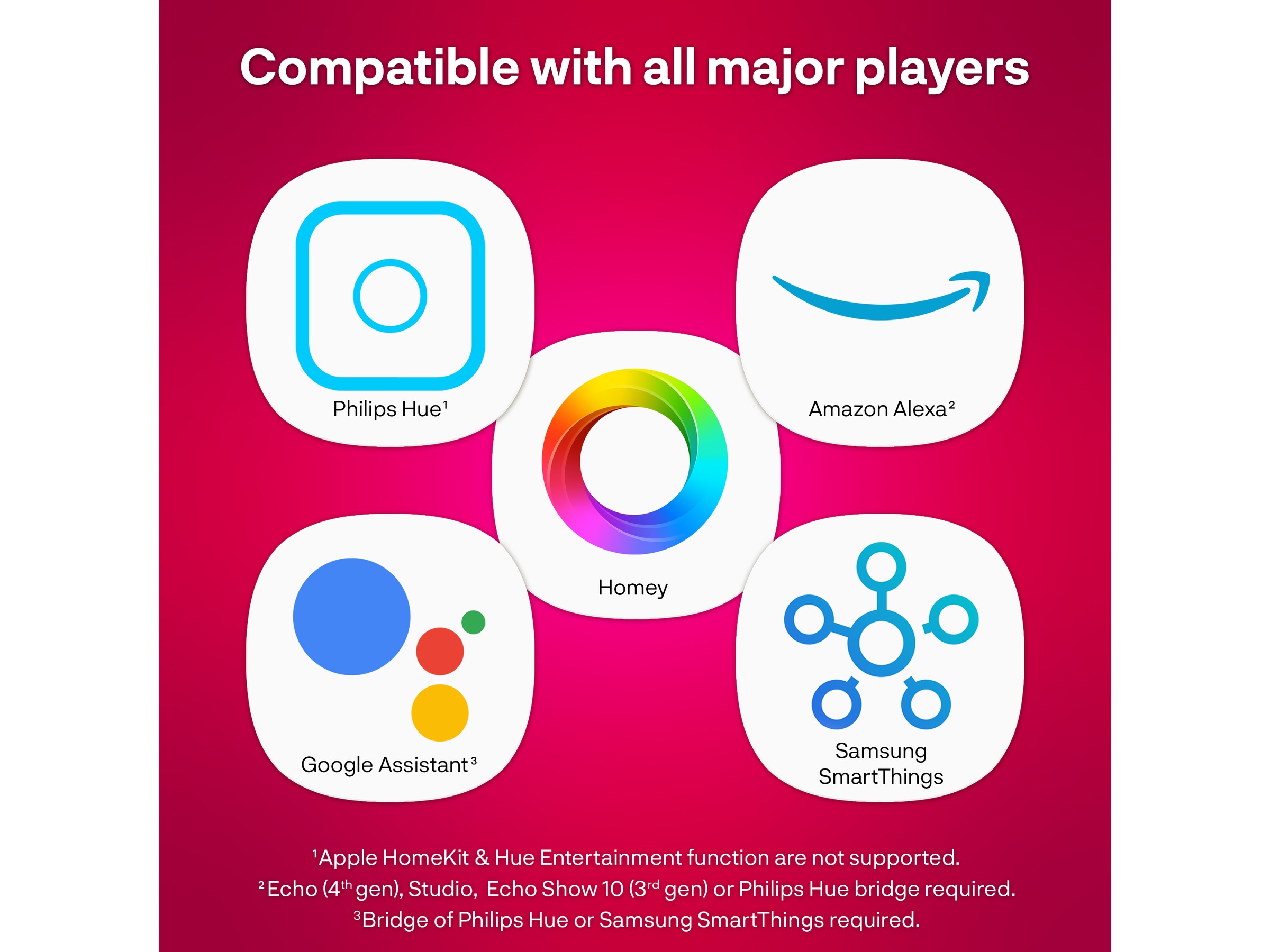 Innr-ljus fungerar med brygga från Philips Hue, Samsung SmartThings, Homey och Innr. Med den senaste Amazon Echo behöver du ingen separat brygga.