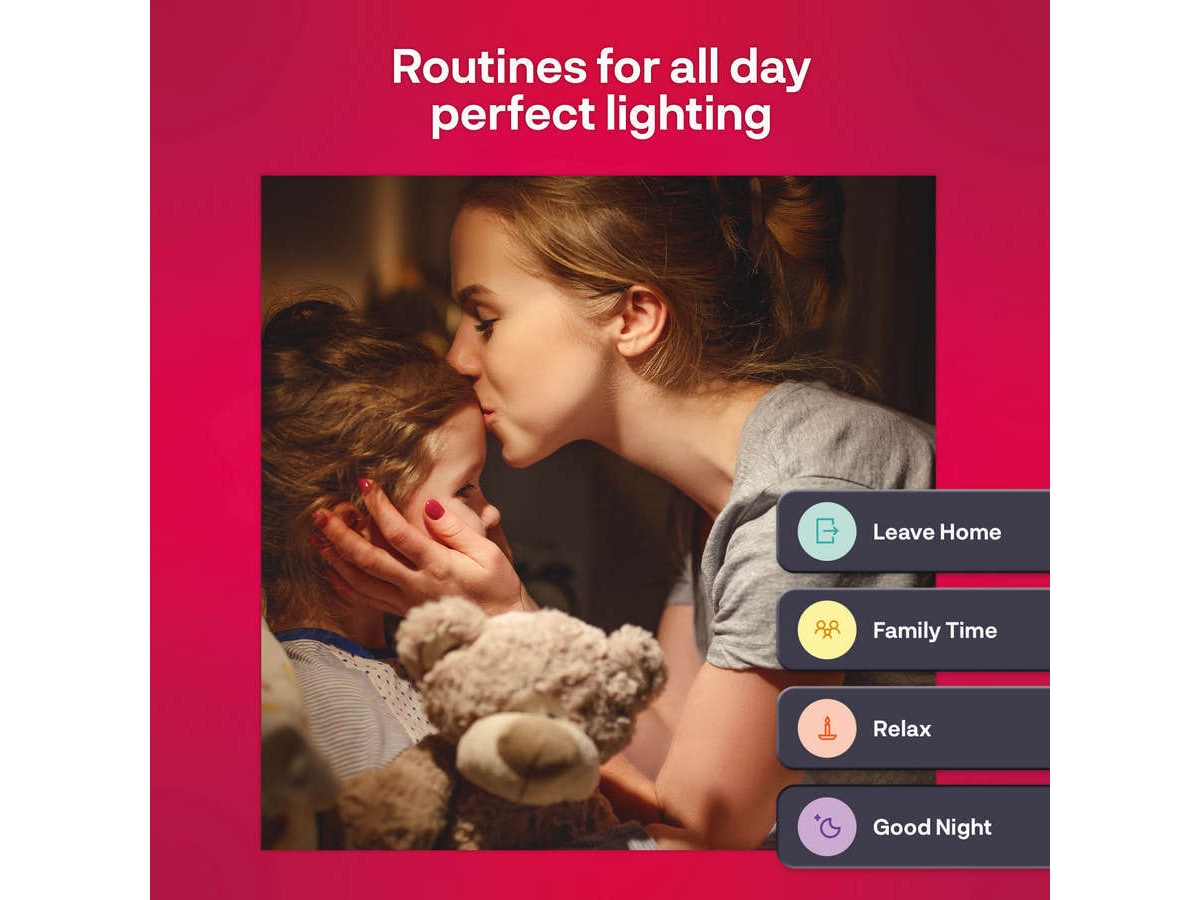 Med upp till 16 miljoner ljusa färger att välja mellan, har det aldrig varit enklare att ge ditt hem en speciell touch. Välj enkelt färg med din smartphone, röst eller din smart switch.