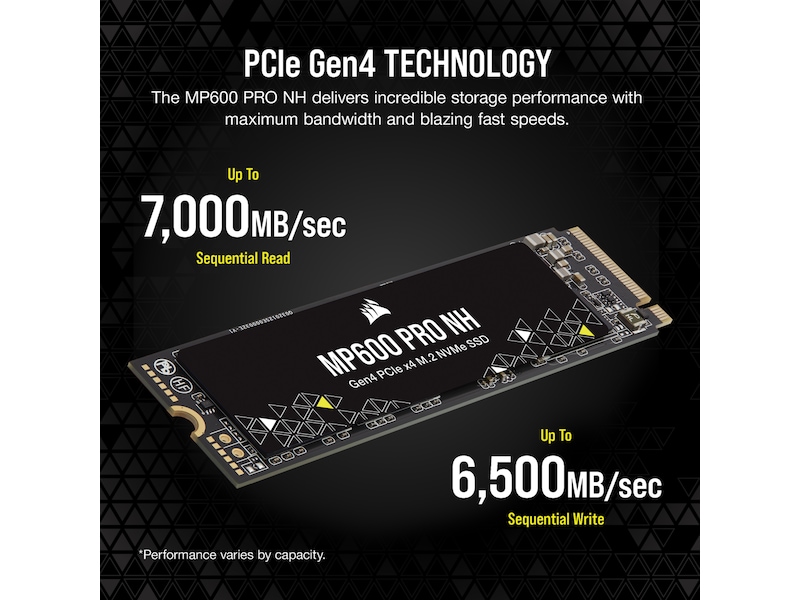 Corsair MP600 PRO NH NVMe M.2 EXTREME GEN4 STORAGE PERFORMANCE A PCIe Gen4 x4 controller delivers phenomenal read, write, and response times that leave standard M.2 SSDs in the dust.