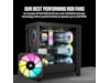 En frontpanel med högt luftflöde säkerställer maximalt luftintag, medan tre medföljande AF120 RGB ELITE PWM-fläktar med AirGuide-teknik fokuserar luften mot dina komponenter med fläkthastigheter på upp till 2 100 varv per minut.