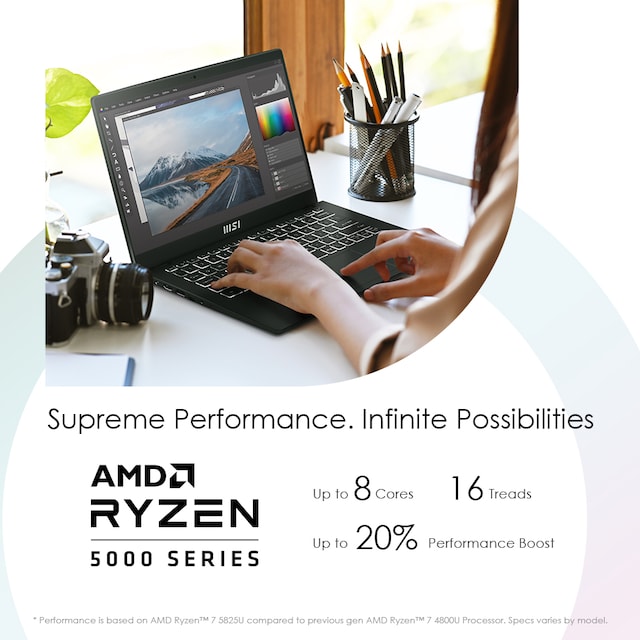 Styr din passion med prestanda som håller jämna steg med din dynamiska livsstil. Oavsett om du utforskar campuslivet eller gör karriär, ger Modern-serien, utrustad med upp till AMD Ryzen™ 5 5625U-processor, dig den responsivitet och längre batteritid som du behöver för att göra dina drömmar till en hisnande verklighet.