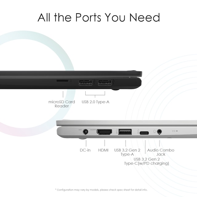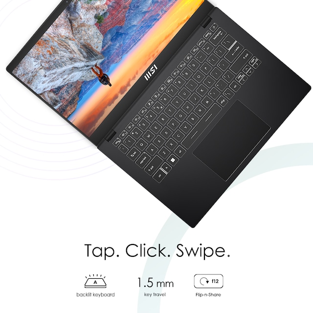 Med 180° lay-flat- och Flip-n-Share-funktionen kan du dela skärmen med ett klick för att få en mer produktiv arbetsplats. Den optimerade 1,5 mm-tangenten gör skrivupplevelsen mer ergonomisk. Tack vare ett bakgrundsbelyst tangentbord i full storlek kan du arbeta i mörka miljöer.