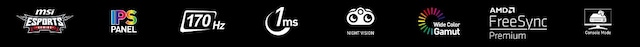 Utrustad med en IPS-panel med 170 Hz uppdateringsfrekvens och 1 ms svarstid, vilket är fördelaktigt i snabba spelgenrer som förstapersonsskjutare, jaktspel, racersimuleringar, realtidsstrategi och sport. Den här typen av spel kräver snabba och exakta rörelser, och en bildskärm med hög uppdateringsfrekvens och snabb svarstid ger dig ett försprång framför dina konkurrenter.