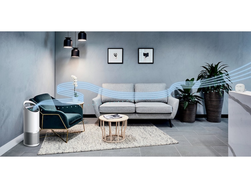 UV-C lampan minskar tillväxten av mikrober som orsakar lukt på luftreningsfilterets yta.