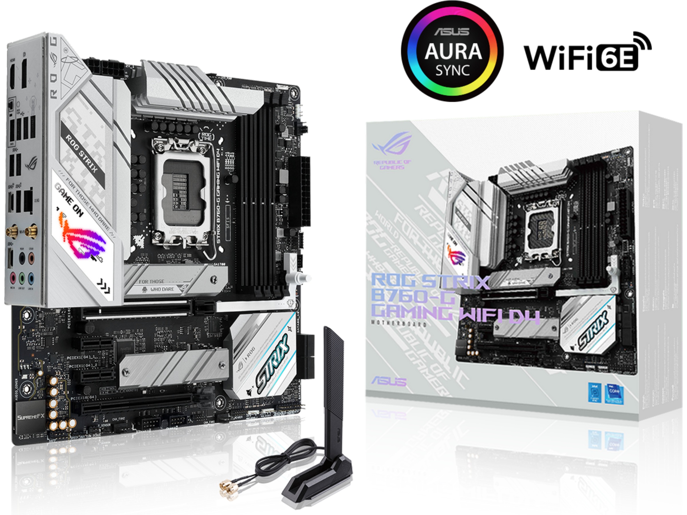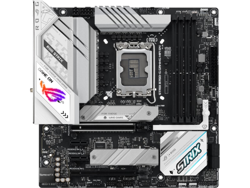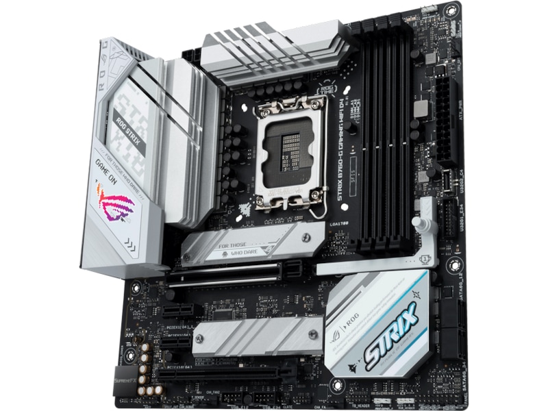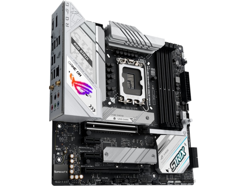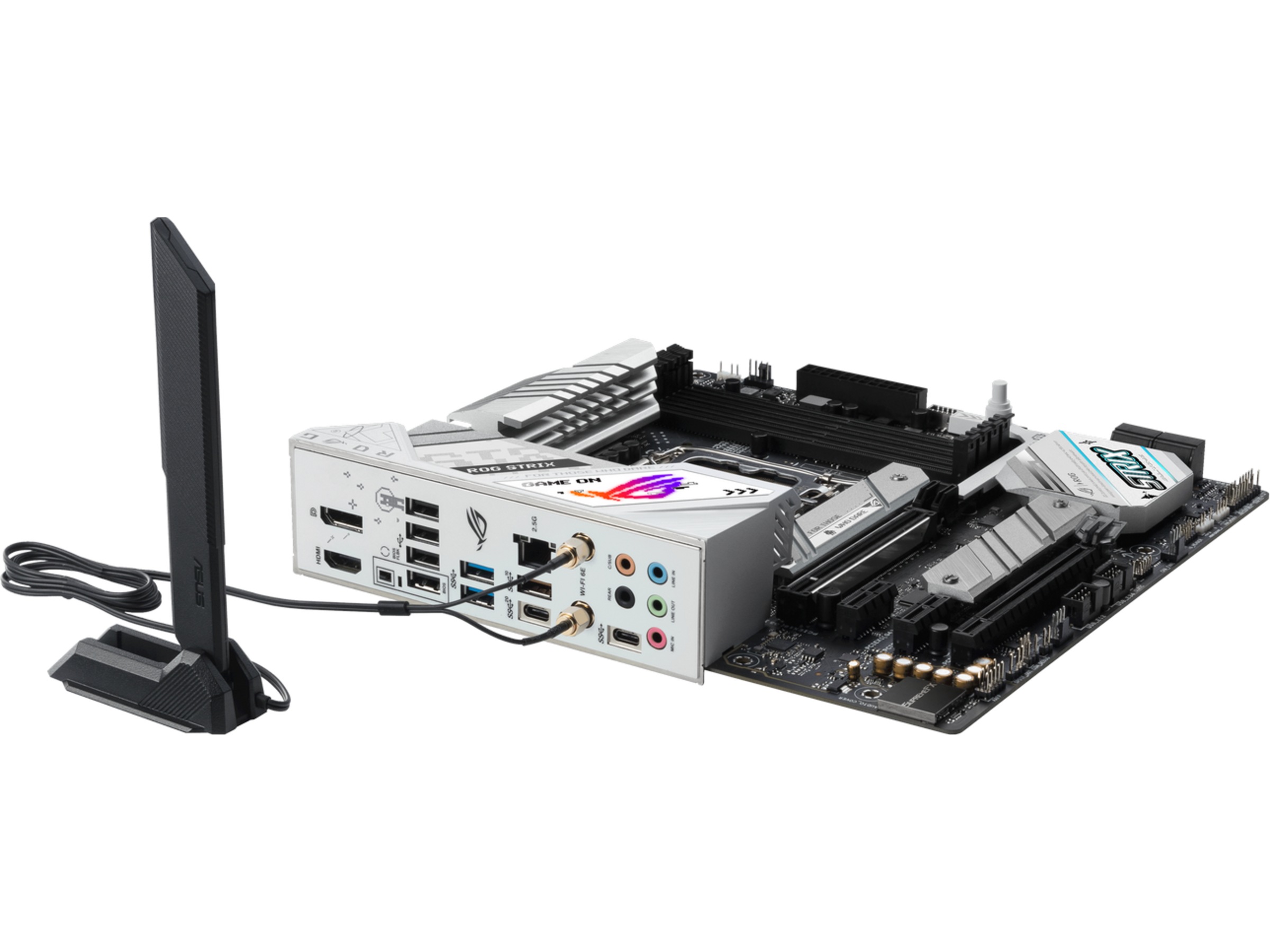 Strix B760-G D4 är helt uppkopplad med trådlöst och trådbundet nätverk med hög hastighet, en mängd USB I/O och SupremeFX-ljud för att pumpa kristallklart ljud genom högtalare eller hörlurar för förbättrad inlevelse