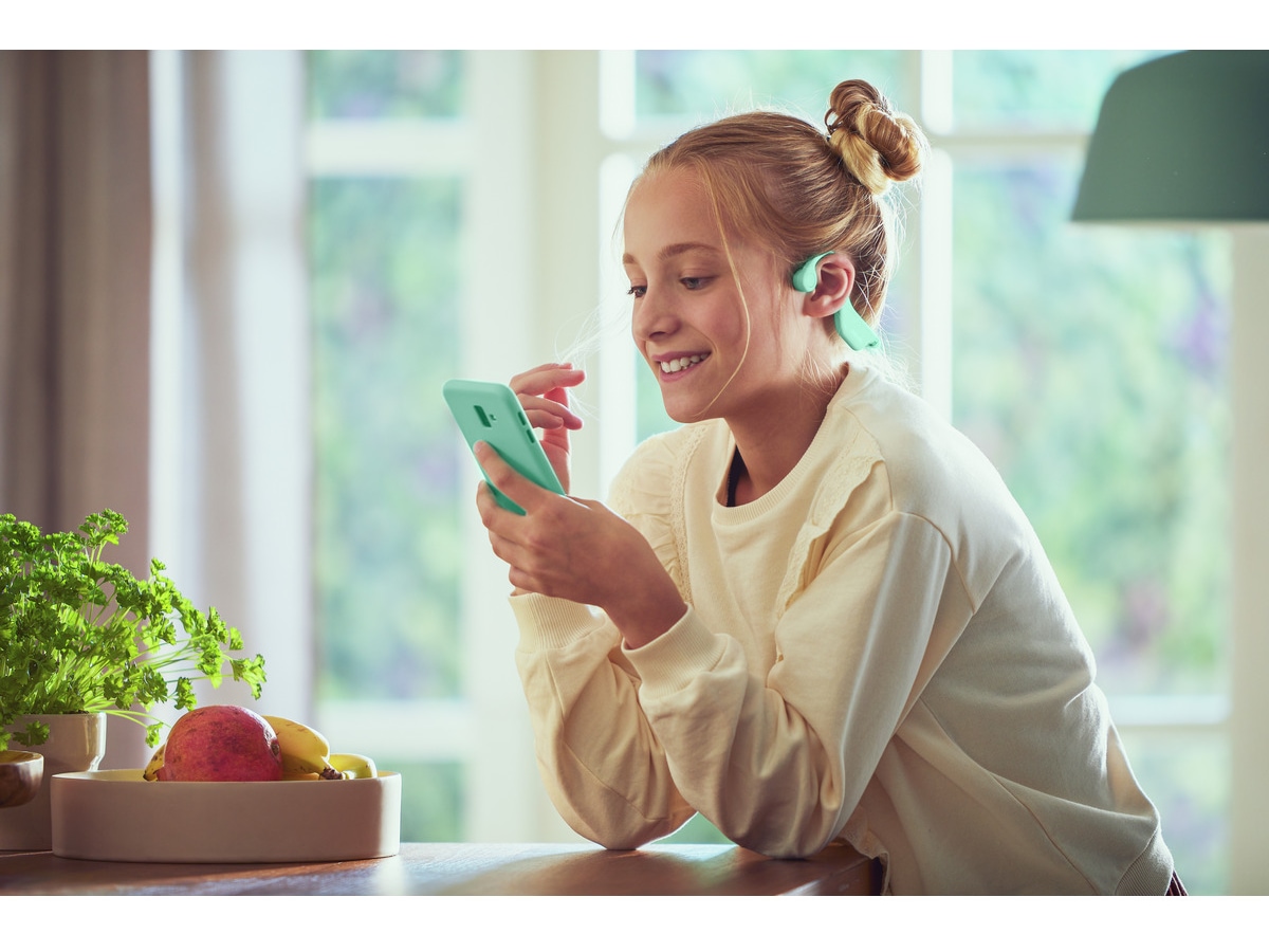 De här trådlösa open-ear-hörlurarna gör att barnen hör allt. Begränsa speltiden och volymen via Philips-appen. Den säkra passformen och det justerbara huvudbandet gör att hörlurarna växer i takt med barnen och trillar inte av när de leker