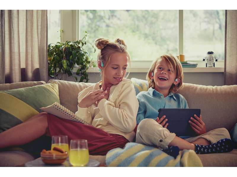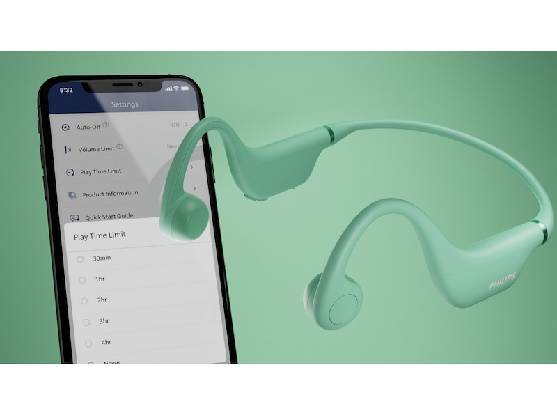 De här trådlösa open-ear-hörlurarna gör att barnen hör allt. Begränsa speltiden och volymen via Philips-appen. Den säkra passformen och det justerbara huvudbandet gör att hörlurarna växer i takt med barnen och trillar inte av när de leker
