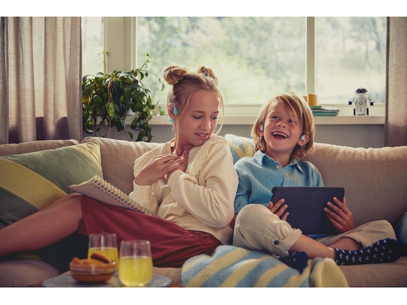 De här trådlösa open-ear-hörlurarna gör att barnen hör allt. Begränsa speltiden och volymen via Philips-appen. Den säkra passformen och det justerbara huvudbandet gör att hörlurarna växer i takt med barnen och trillar inte av när de leker