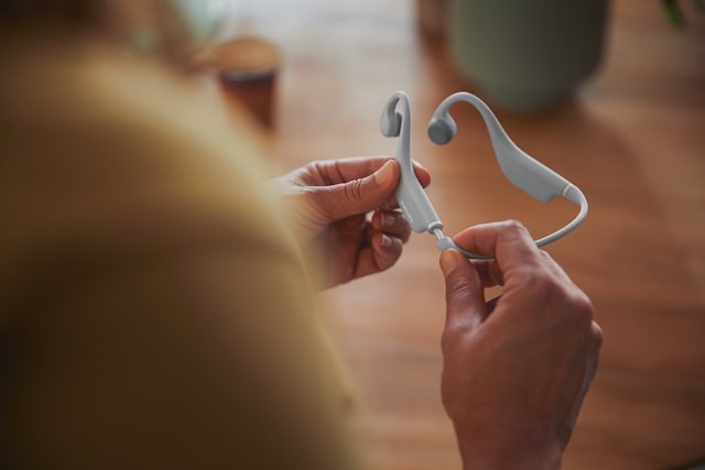 De här hörlurarna använder bone conductionteknik för att låta barnen höra sin musik, sina lektioner eller sina spel. På så sätt kan hörlurarna vila framför öronen så att barnet kan höra allt som händer runt omkring.
