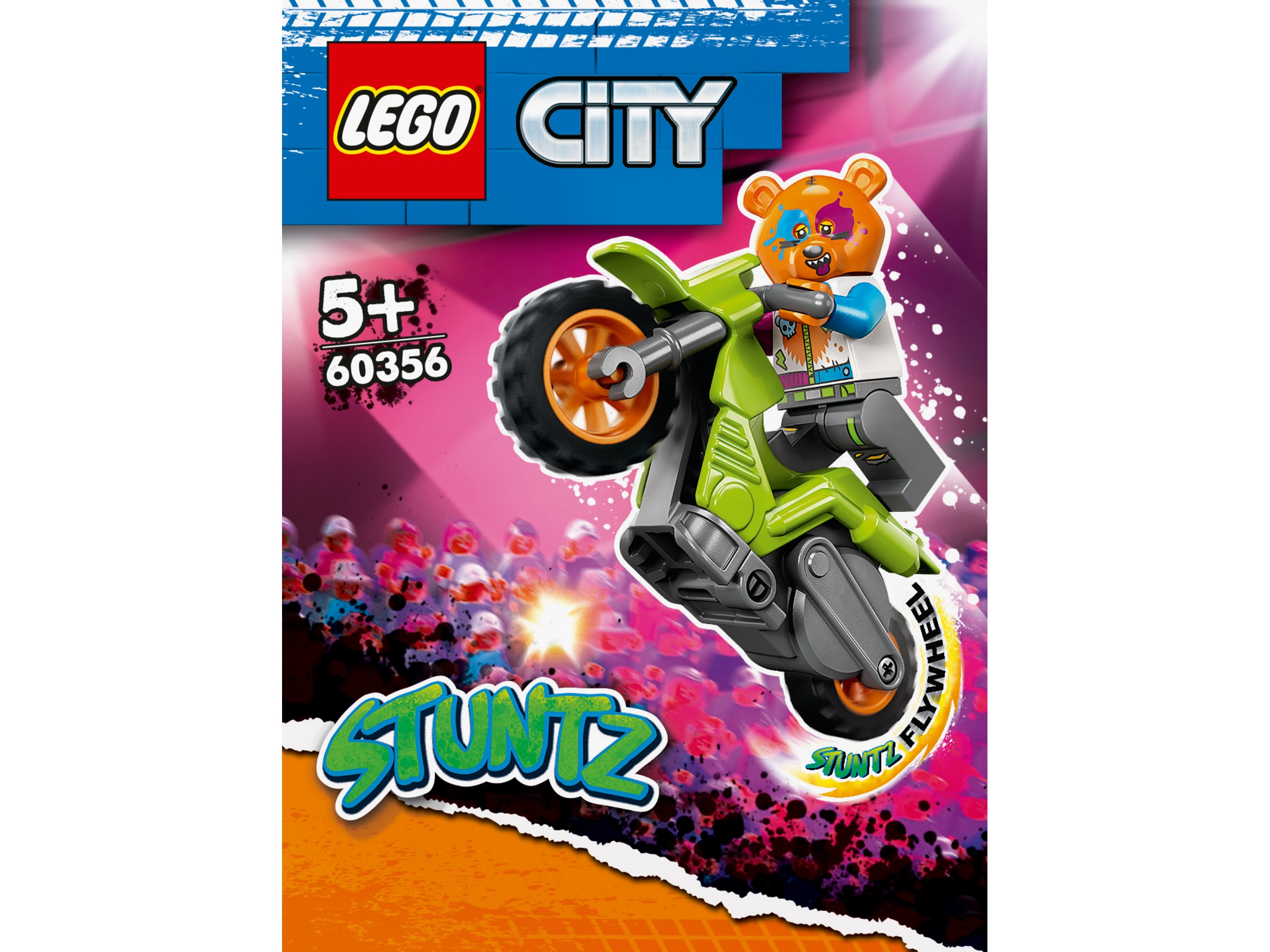Timmar av spännande lek väntar med leksetet LEGO® City Stuntcykel med björn (60356) för barn från 5 år, med en cool flyghjulsdriven motorcykel för att göra grymma hopp och trick.
