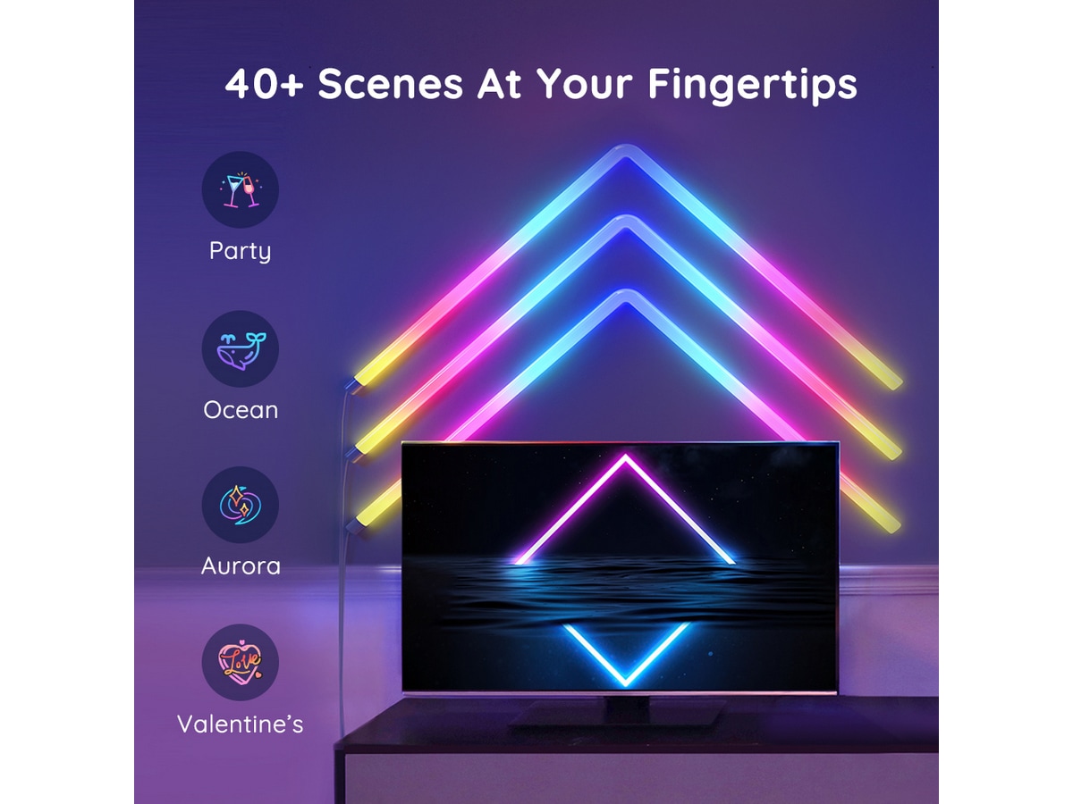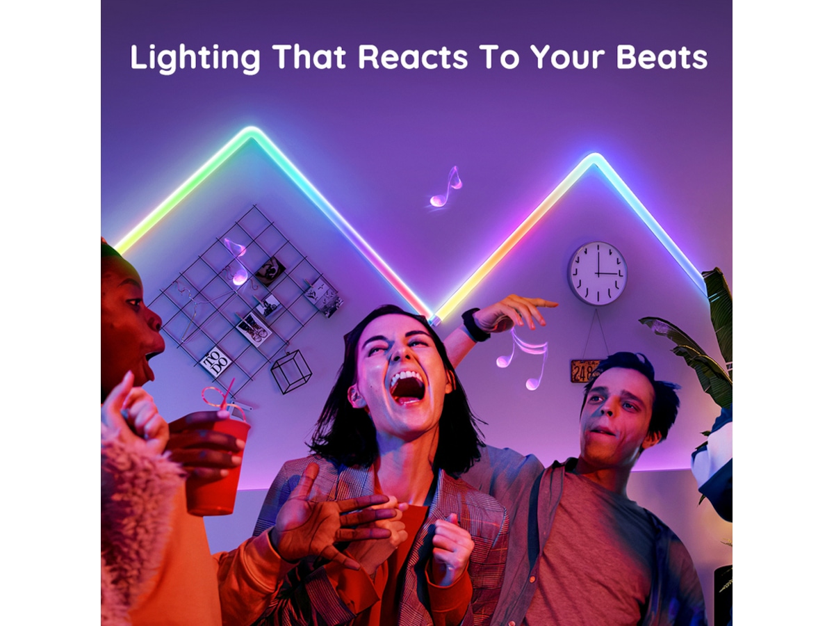 Vår patenterade RGBIC-teknik gör att Glide kan visa upp till 57 färger samtidigt och 16 miljoner färger totalt, vilket möjliggör vackra färgkombinationer och flödande flerfärgseffekter.