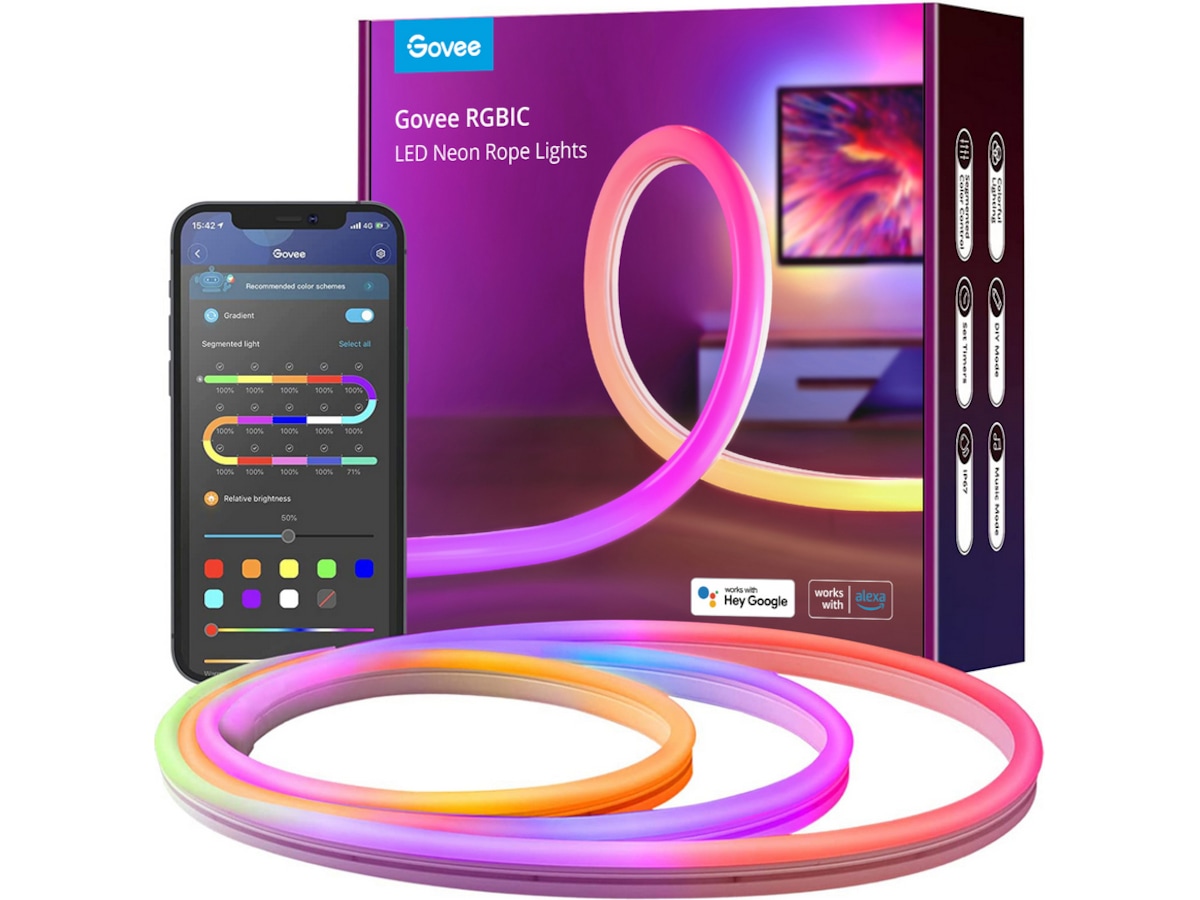 Anpassa din belysning på ditt sätt med vår innovativa RGBIC-teknik. Det integrerade IC-chippet möjliggör flera färgalternativ på en enda lampa. Dina färger, effekter och mer kan justeras med Govee Home-appen.