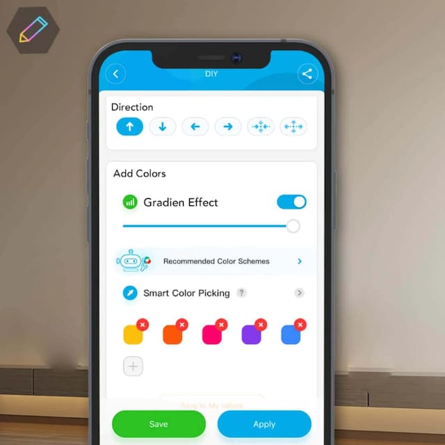 Justera enkelt flödet, färgen och riktningen på dina ljuspaneler. Med DIY Mode på Govee Home App erbjuder vi olika alternativ som låter dig skapa din belysning. Välj en mängd olika färger och effekter som är unika för dig.