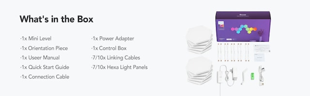 Govee Glide Hexa Light Panels består av 10 paneler som kan sorteras i olika former.