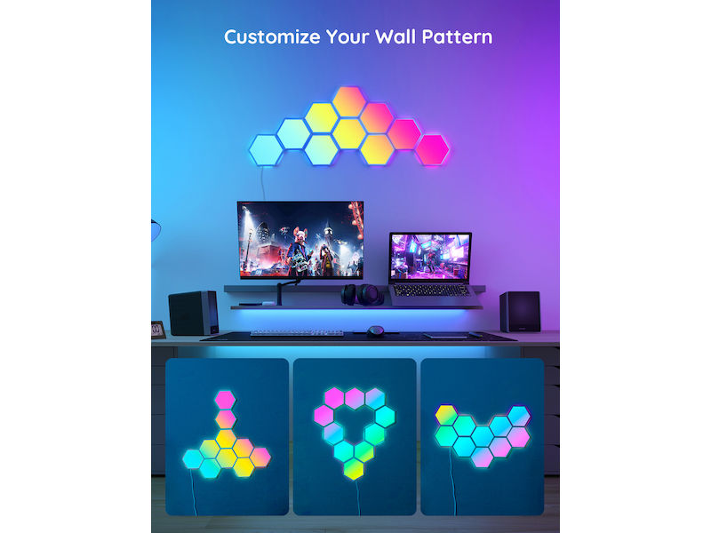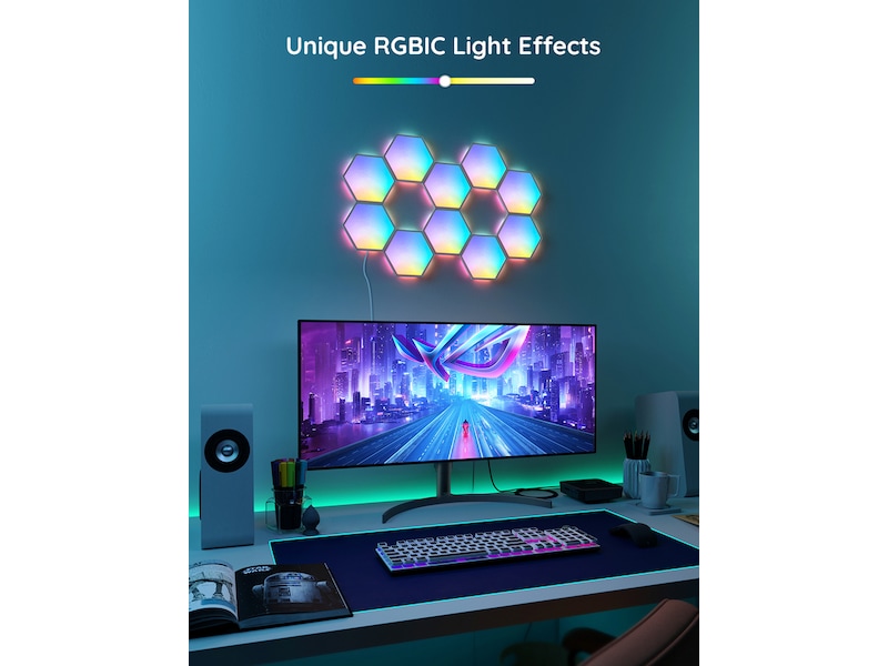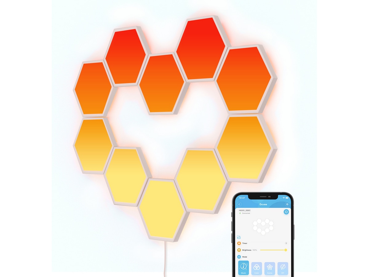 Govee Glide Hexa Light Panels består av 10 paneler som kan sorteras i olika former.