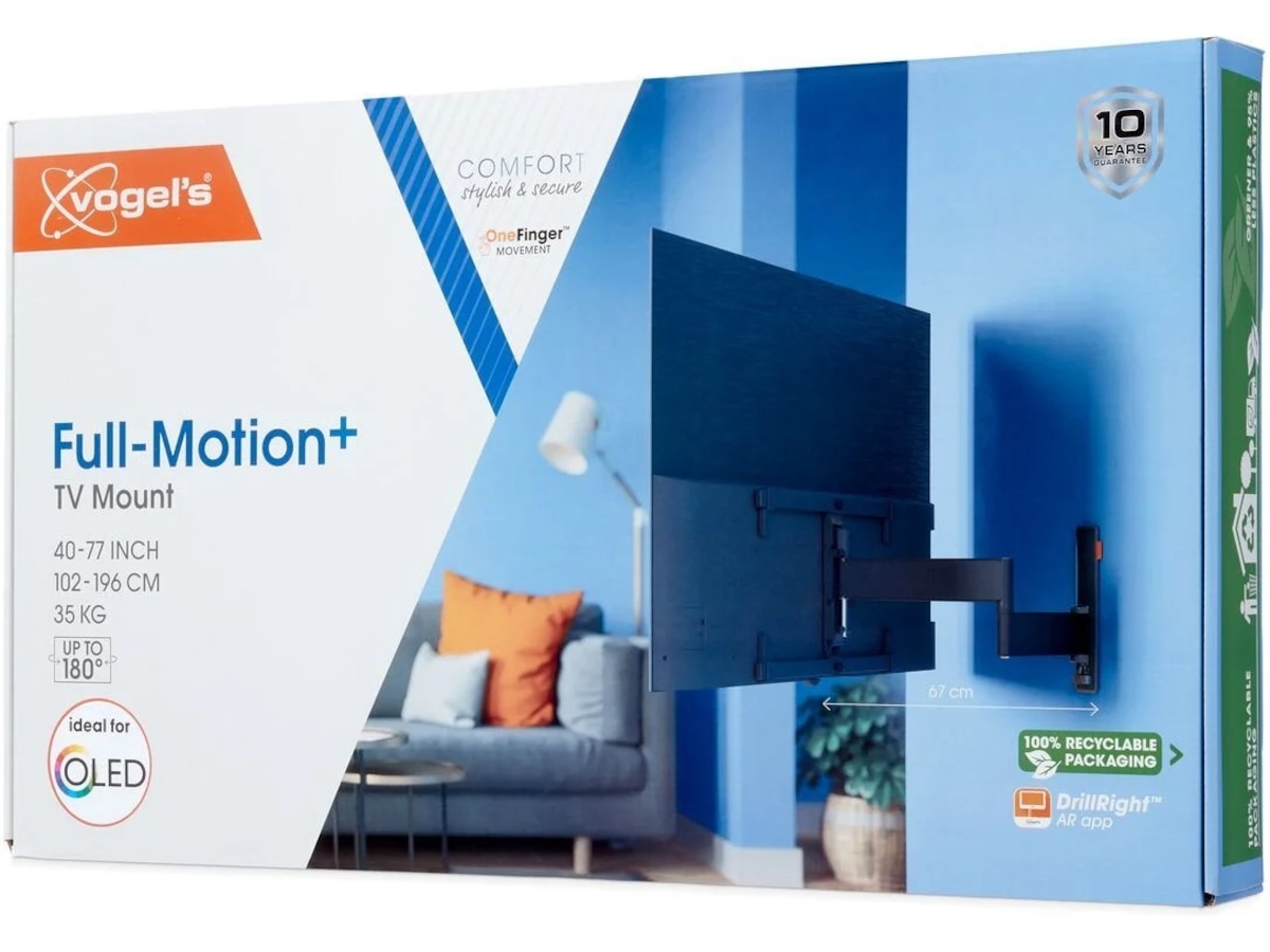 Med detta "familjesäkra" COMFORT Full-Motion+ TV-väggfäste kommer du att njuta av din vackra OLED-TV till max. Även efter år av intensiv användning fungerar den fortfarande lika bra som första dagen. Väggfästet är lämpligt för OLED-TV från 40 till 77 tum och väger upp till 35 kg.