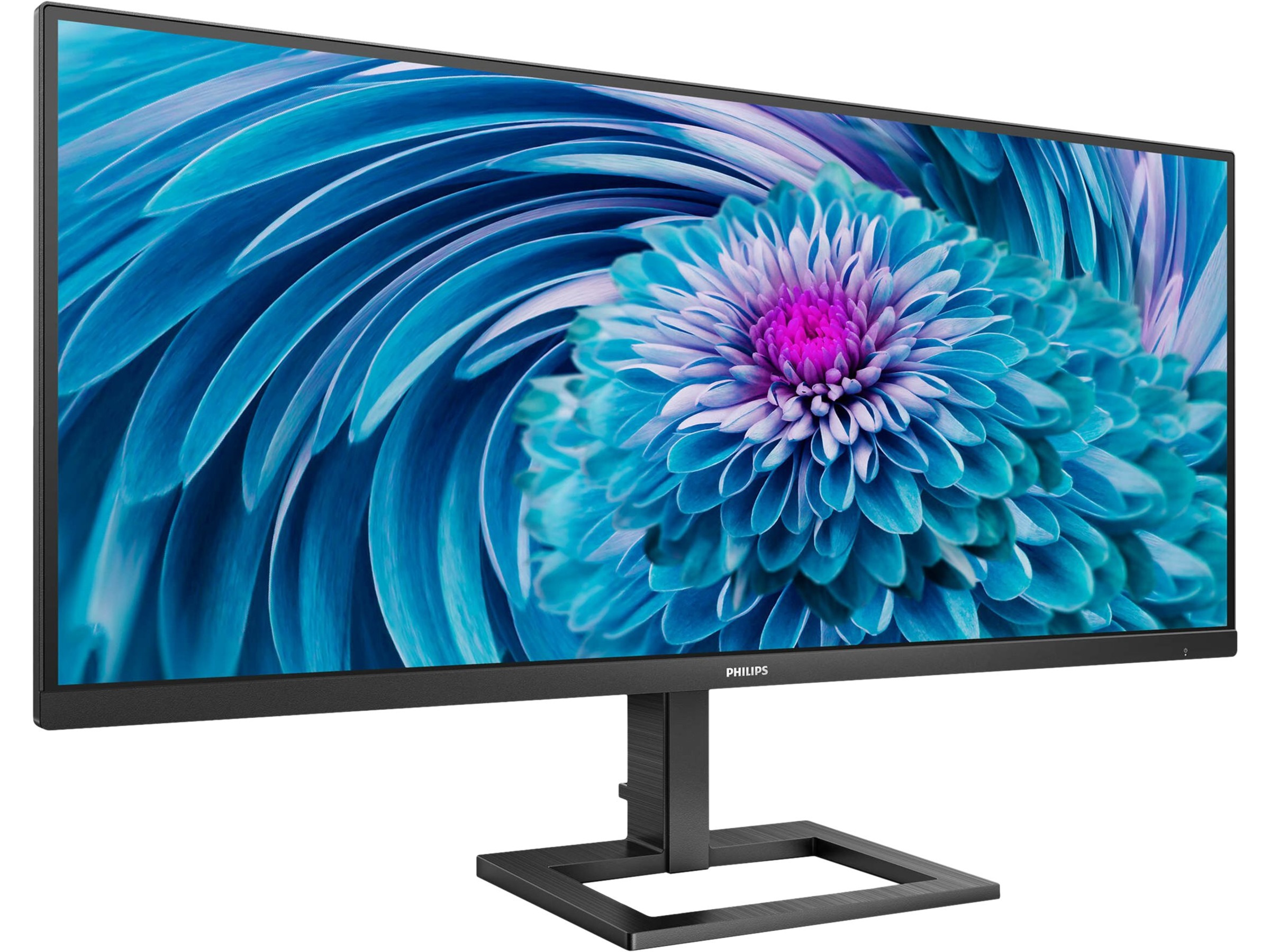 Philips E line UltraWide-skärmen erbjuder expansiva panoramabilder. WQHD-skärmen och det ergonomiska stativet garanterar optimala visningsförhållanden. Funktioner som allt-i-ett USB-C, inbyggd USB-hubb och MultiView hjälper till att öka produktiviteten.
