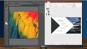 Med Philips MultiView-skärmen med ultrahög upplösning kan du nu uppleva en värld av anslutningsmöjligheter. MultiView möjliggör aktiv dubbel anslutning och visning så att du kan arbeta med flera enheter som en PC och notebook samtidigt, för komplex multitasking.