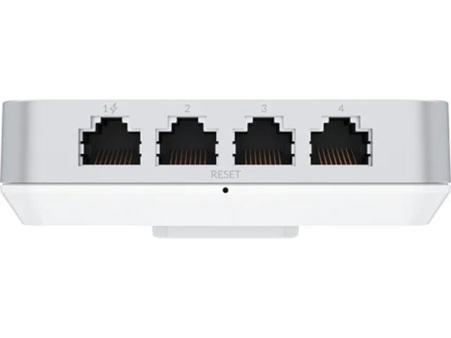 WiFi 6-stöd (2,4/5 GHz-band) 5,3 Gbps aggregerad genomströmningshastighet (1) GbE RJ45-port (PoE In) (4) GbE RJ45-portar, inklusive en som stöder PoE-utgång*