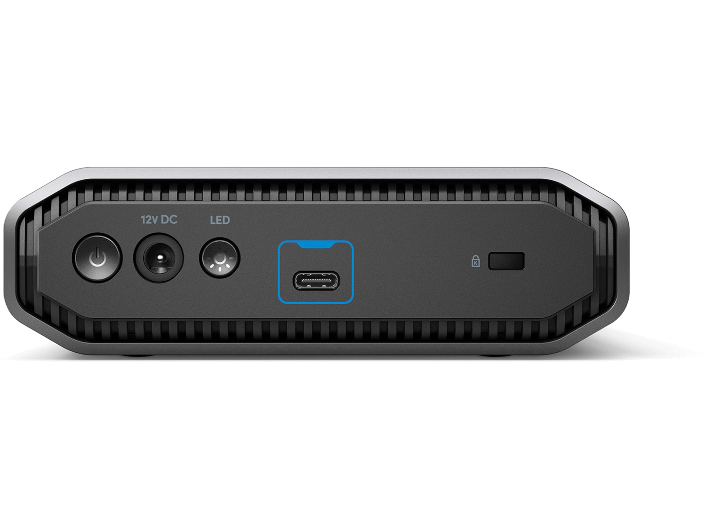 SanDisk Professional G-DRIVE-hårddisken i företagsklass med ett USB-C™-gränssnitt (10 Gbps) ger ultrapålitlig lagring med hög kapacitet i en förstklassig, elegant design. 7200RPM Ultrastar-enheten inuti har kraftfull prestanda med hastigheter på upp till 280 MB/s läsning och 280 MB/s skrivning (22 TB kapacitet) som är perfekt för snabb säkerhetskopiering och åtkomst till dina HD-videor, foton, musik och annat högvärdigt innehåll. Det stapelbara, anodiserade aluminiumhöljet erbjuder förstklassig hållbarhet och förankringspunkter för att fästa på en DIT-vagn, en monteringsplatta eller annan utrustning för dina produktionsbehov. Den stationära G-DRIVE-hårddisken erbjuder också anpassning av LED-ljusljusstyrkan med tre lägen att välja mellan, är redo för Mac och formateras enkelt om för Windows®.