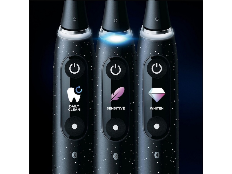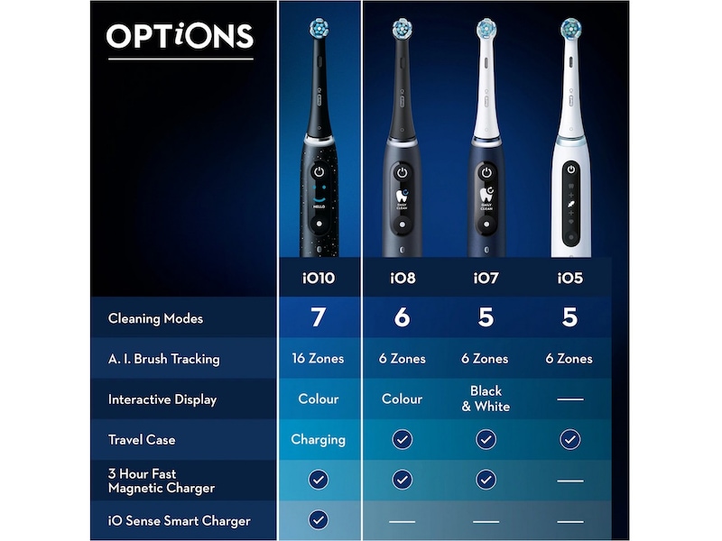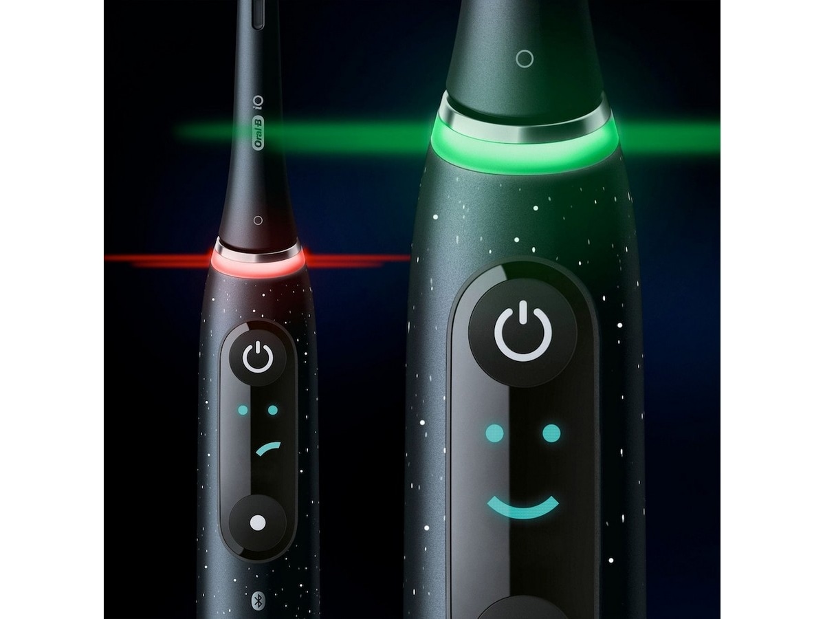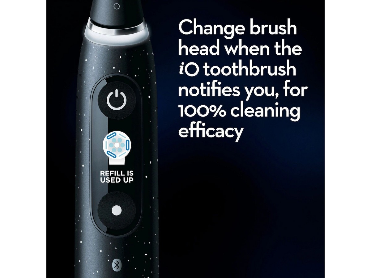 iO 10 eltandborste med revolutionerande iO Sense smart laddare anpassar din borstning med realtidssvar och guidar dig för perfekt täckning, borstningstid och borsttryck för en härlig, enkel rengöring.