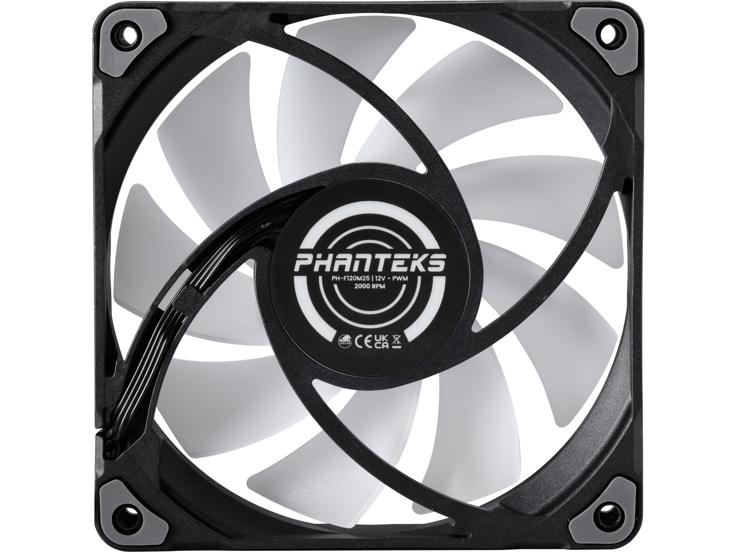 The Phanteks M25 fans build upon the award winning T30 fan to keep next gen hardware cool with high airflow cooling performance. The M25 fan blades are specifically optimized to perform the best with fine mesh/dust filters, heatsinks and radiators with reduced RPM levels. This optimization keeps unwanted bearing noises at a minimum while also leaving plenty of cooling headroom, when necessary, by going full speed. By sharing some of its design with the T30, the M25 stands out by delivering higher airflow through heatsinks and radiators with lower RPM levels with exceptional value. The wide RPM range, up to 2000 RPM, can be precisely controlled through PWM to ensure the M25 is excellent for both quiet and high-end gaming systems.