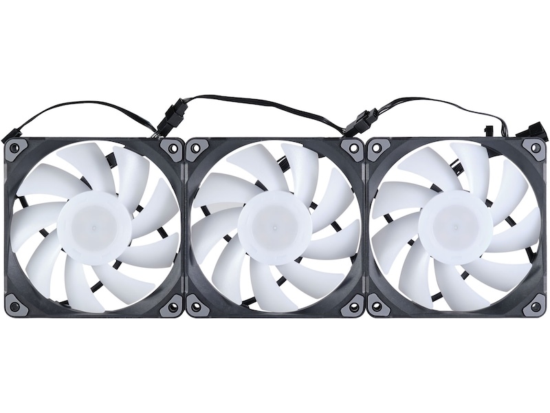Förpackningsinnehåll 12 fläktskruvar, 600 mm D-RGB adapter/-förlängning, 2 x PWM förlängningskabel (500 mm)