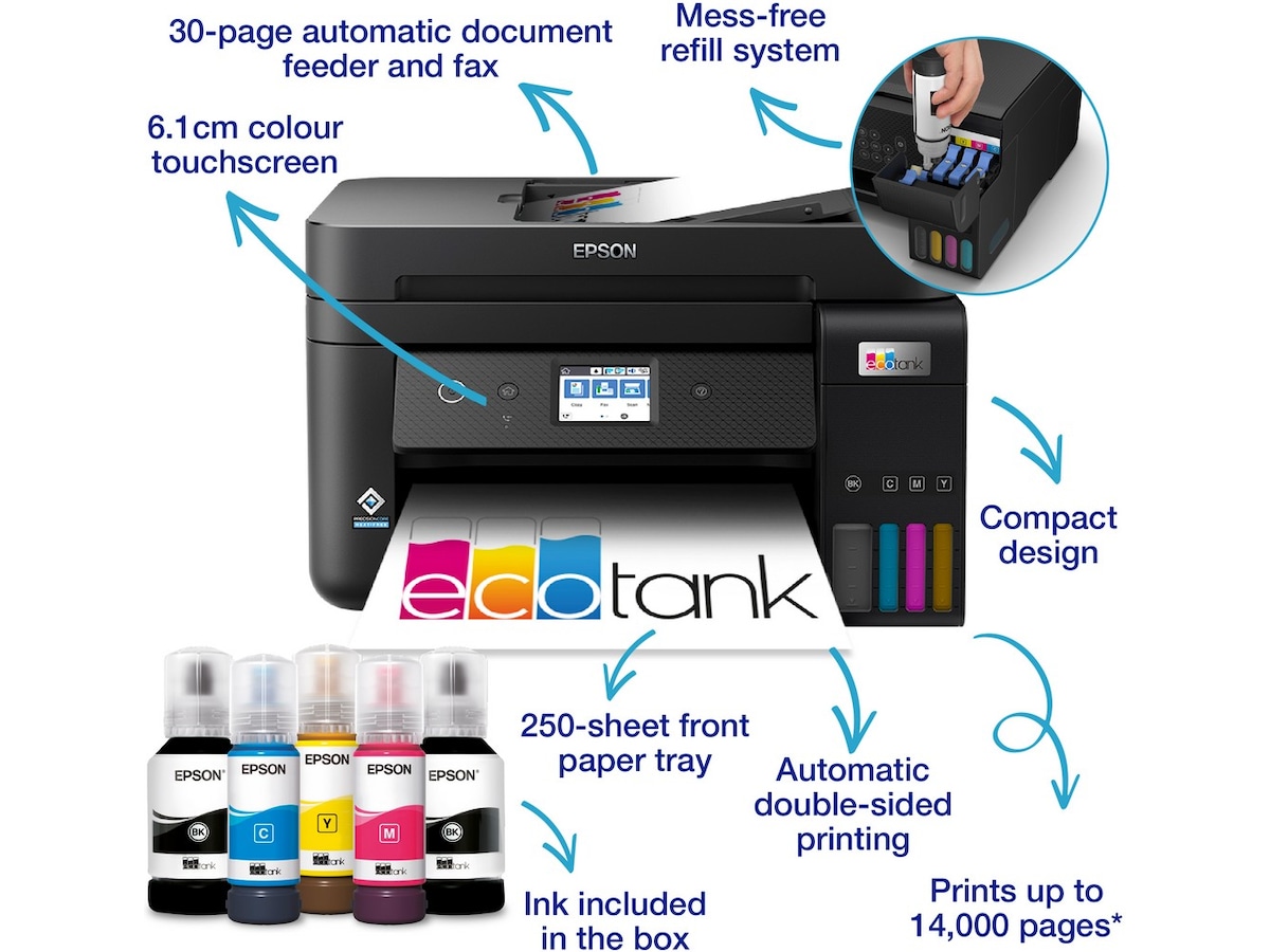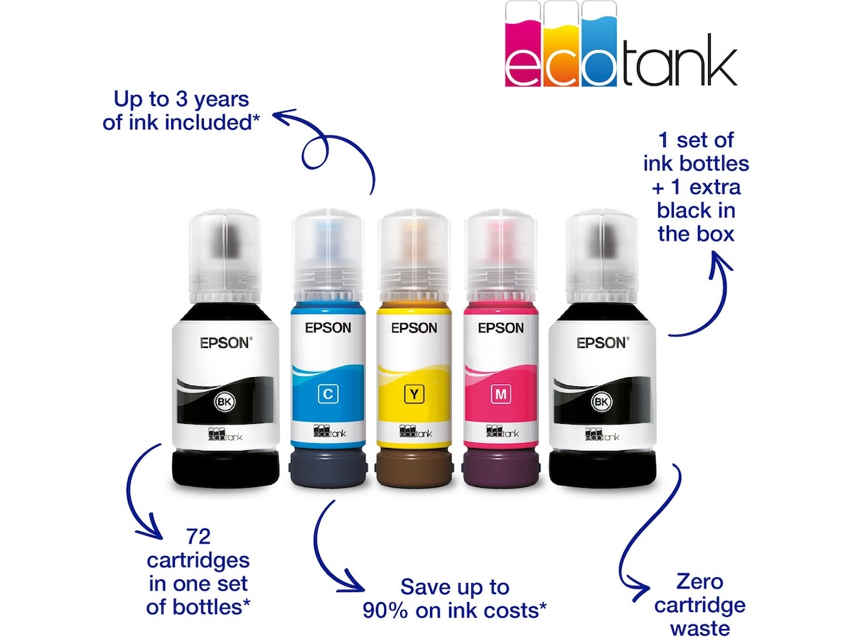 2 x bläcktank (svart), 1 x bläcktank (gul) - upp till 5200 sidor, 1 x bläcktank (cyan) - upp till 5200 sidor, 1 x bläcktank (magenta) - upp till 5200 sidor |