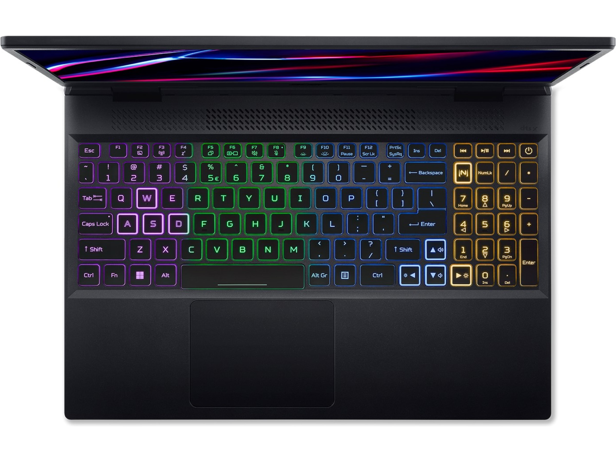 Piffa upp saker med det 4-zoners RGB-tangentbordet och ta kommandot över den bärbara datorns inre funktioner via den dedikerade NitroSense Key. WASD- och piltangenterna är också markerade för enkel synlighet för dessa kopplingsmoment.