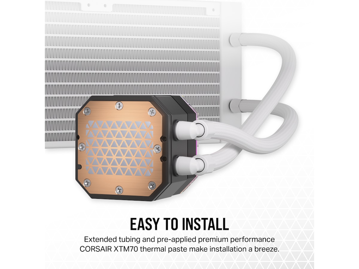 Förlängd slang på 400 mm (H100i, H115i)/450 mm (H150i, H170i), modulära verktygslösa monteringsfästen och förberedd XTM70-värmepasta gör det enkelt att installera den på de senaste Intel®- och AMD®-moderkortfästena, inklusive LGA 115X, 1200, 1700, 2011 och 2066, samt AMD Socket AM4, AM5 och sTRX4/sTR4.
