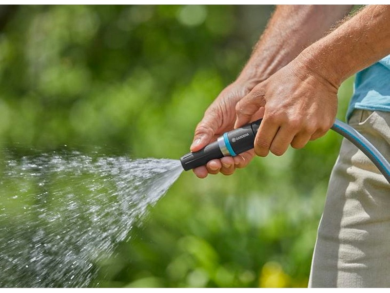 Komplett set för vattning och städning runt huset och i trädgården. Plastkomponenterna är tillverkade av mer än 90 % återvunnet material.