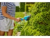 Den batteridrivna grässaxen ComfortCut Li kan omvandlas till en busksax med buskbladet (art. nr. 9863-20). Teleskopskaftet med hjul (art. nr. 9859-20) ser till att man kan klippa gräsmattans kanter utan att böja sig ned. Båda finns som tillbehör.