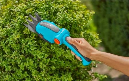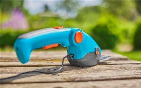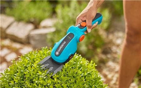 En praktisk och batteridrivna grässax för exakt klippning av gräskanter och små buskar