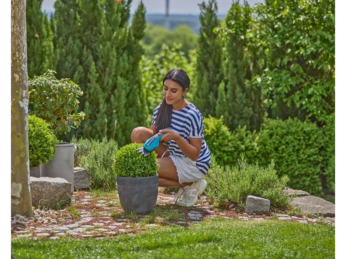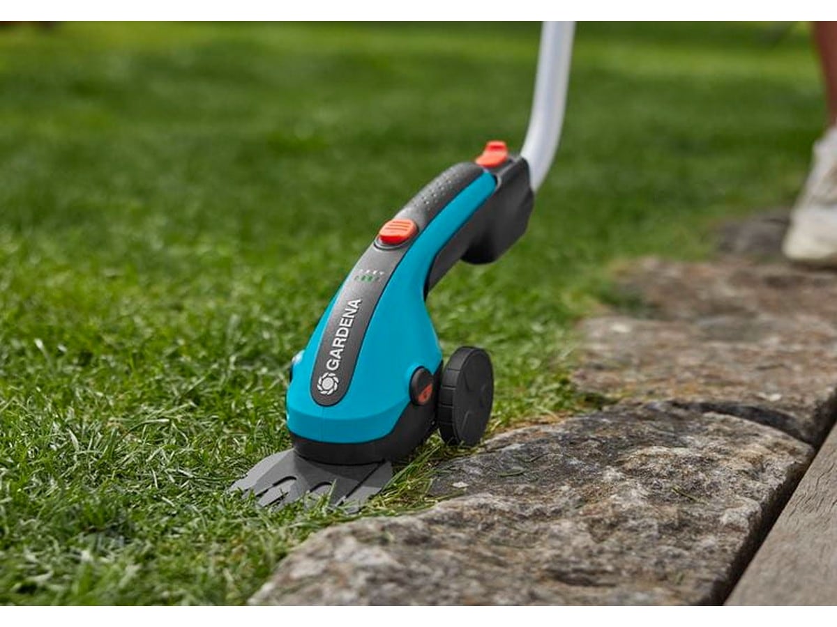 GARDENA grässax ClassicCut Li Set hjälper dig att klippa exakta gräskanter och uppnå en vackert välskött form för små buskar som buxbom. Setet innehåller ett 8 cm brett gräsblad, hjul och ett teleskophandtag. Bladet är precisionsslipat och non-stick belagt för långvarig skärpa. Det säkerställer ett exakt, jämnt och rent snitt.