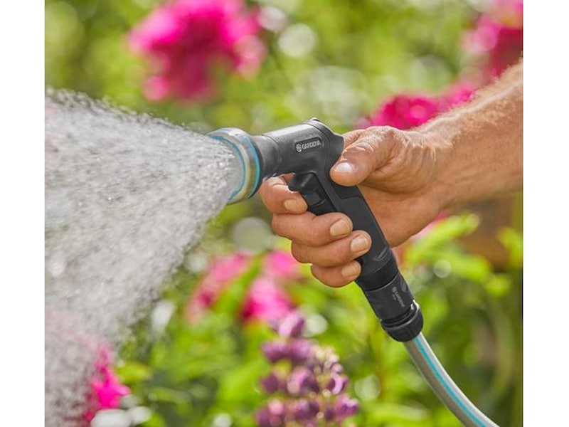 EcoLine duschpistol har en mjuk stråle som gör det möjligt att skonsamt vattna sängar och krukor.