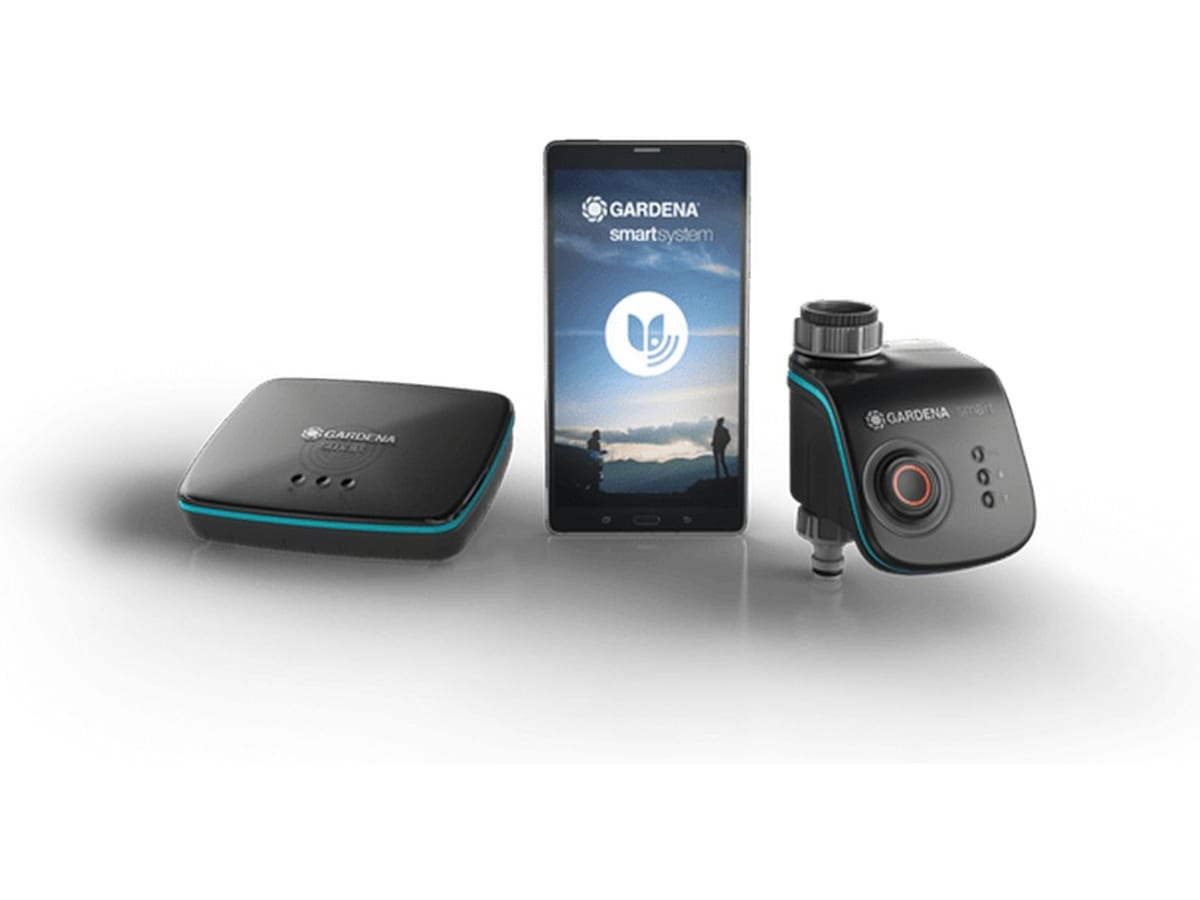 Setet består av GARDENA smart Water Control och GARDENA smart Gateway. GARDENA smart Water Control ansluts till din vanliga trädgårdskran och justerar vattentillförseln, medan GARDENA smart Gateway synkroniserar det smarta systemet via internet. På så sätt kan du vattna trädgården effektivt, hålla växterna friska och samtidigt utnyttja varje droppe vatten på bästa sätt.