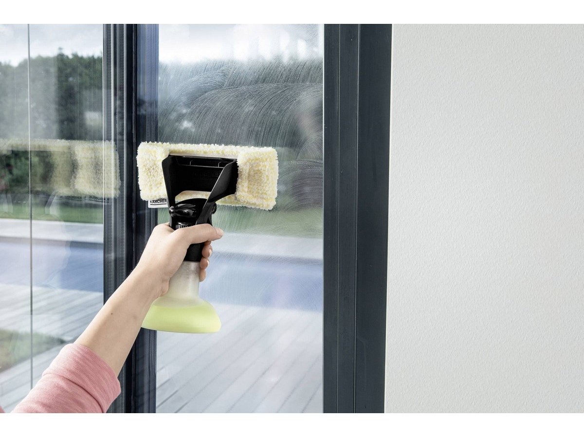 Den perfekta kombinationen av sprayflaska och mikrofiberduk garanterar effektiv rengöring och, i kombination med den batteridrivna fönsterdammsugaren, perfekt rena fönster.