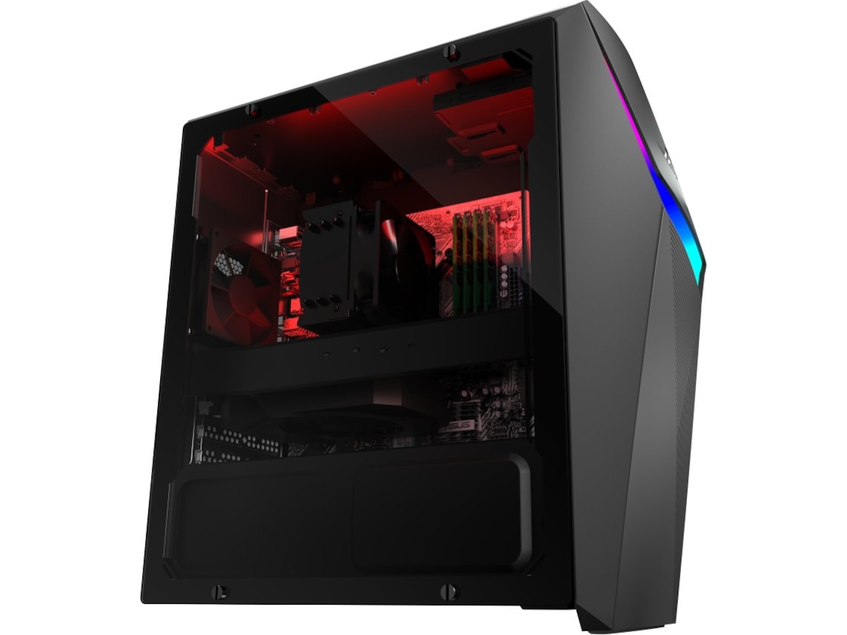 G10 har en kyldesign som hyser två isolerade luftkammare. Den övre hyser CPU och GPU, medan strömförsörjning och hårddisken kan hittas i den nedre kammaren. De isolerade kamrarna ger renare luftflöde genom systemet och förhindrar värme från CPU och GPU från att värma upp strömförsörjningsenheten och lagringsenheterna. Med G10 har du enkel åtkomst till alla nödvändiga portar, med 2x USB 3.2 Gen 1-portar och en ljud/mikrofon kombo på framsidan. Baktill sitter det 4x USB 3.2 Gen 1 och 2x USB 3.2 Gen 2-portar, Gigabit Ethernet, DVI-D, VGA och HDMI-ut.