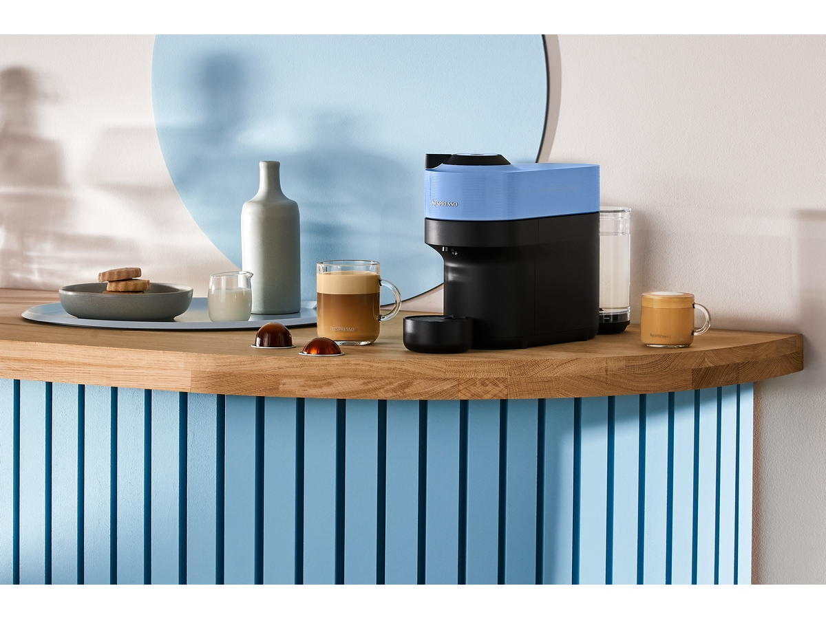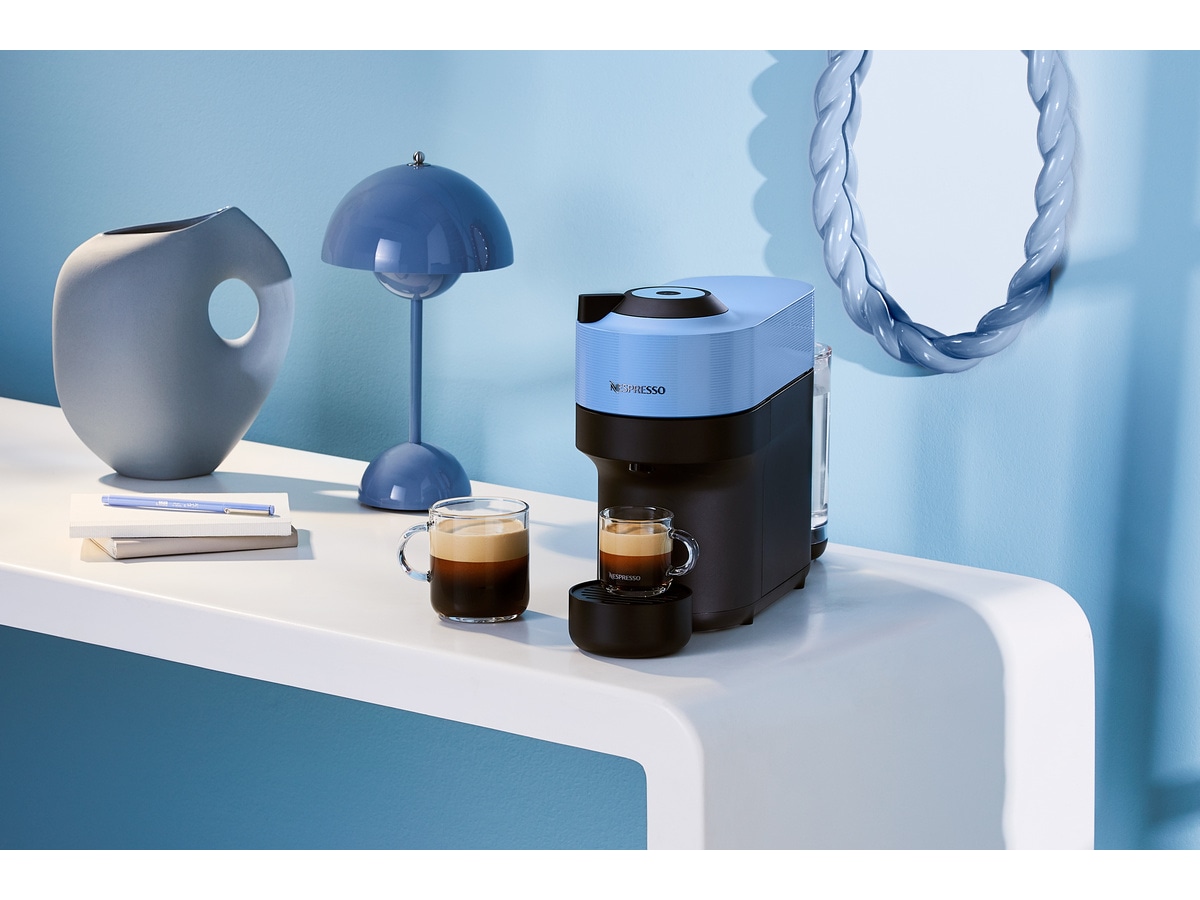 Vertuo Pop lyser med sin moderna och kompakta design.
