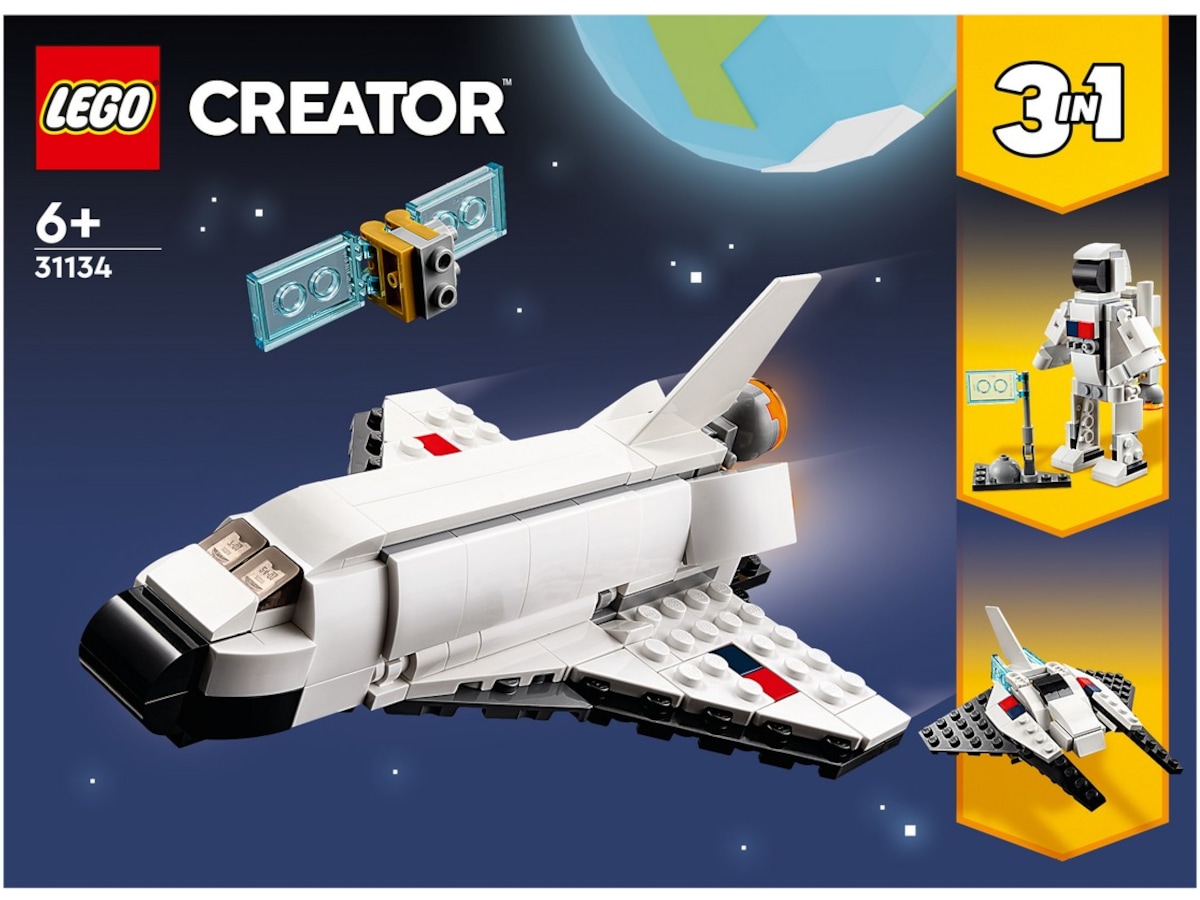 • 3-i-1-leksak – Alla som gillar rymdlekar kan uppleva intergalaktisk action med leksetet LEGO® Creator 3in1 Rymdfärja (31134), med en rymdfärja, en rörlig astronaut och ett rymdskepp