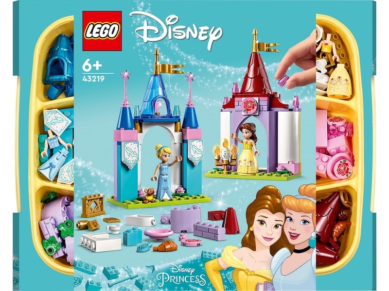 Inspirera barn från 6 år med LEGO® ǀ Disney: Disney Princess Kreativa slott (43219). Detta byggbara lekset innehåller en blandning av ikoniska och vanliga delar, LEGO minidockor av Disneys Belle och Askungen, LEGO figurer av Lumiere och Gus, plus 2 instruktionsaffischer som uppmuntrar till socialt byggande med familj eller vänner. Medan de bygger kan barn låta appen LEGO Builder guida dem på ett enkelt och intuitivt byggäventyr. De kan zooma in, rotera modeller i 3D, spara set och hålla reda på sina framsteg. Oändliga lekar Detta set med minislott kommer garanterat att ge alla som älskar Disneyprinsessor obegränsad underhållning. Det går att leka med setet på egen hand eller tillsammans med vänner eller familj, och det kan också kombineras med andra LEGO ǀ Disney set (varje set säljs separat). Ikoniska Disneyprinsessor Disneys Belle and Askungen, plus Lumiere och Gus, hjälper till att uppmuntra barns fantasi när de återskapar välkända berättelser eller hittar på nya. Denna byggbara leksak blir en rolig födelsedagspresent till fans eller barn som älskar handgriplig lek.