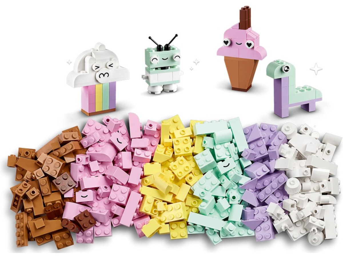 • Pastellklossar för kreativa barn – Uppmuntra barn från 5 år att utforska färg och kreativitet med LEGO® Classic Kreativt skoj med pastellfärger (11028), för fritt byggande med en rad olika pastellfärger