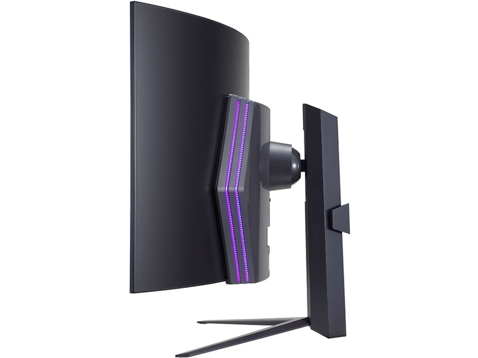 Svängning / lutning / höjd kan justeras på 45GR95QE som har en praktiskt taget ramlös design.