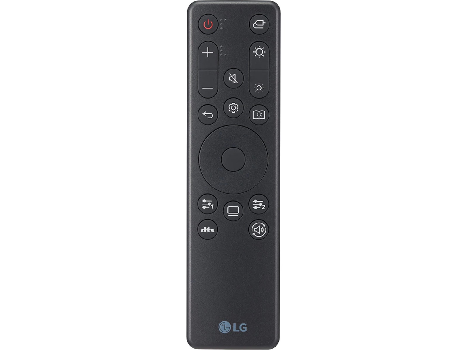 En fjärrkontroll som stödjer programmerbara tangentkombinationer medföljer för smidig hantering av bildskärmsinställningar.