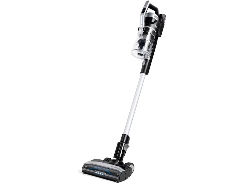 Den trådlösa dammsugaren med sitt 64 cm långa skaft är idealisk för dammsugning på större ytor, medan den mindre avtagbara handdammsugaren är perfekt för rengöring av möbler eller bilens interiör.